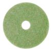 This white extra fine polishing pad is formulated for polishing clean, dry floors. A fine water mist is used to produce a high gloss wet look. This thick pad is ideal for polishing soft waves on wood floors. Use with 350-800 RPM machines.